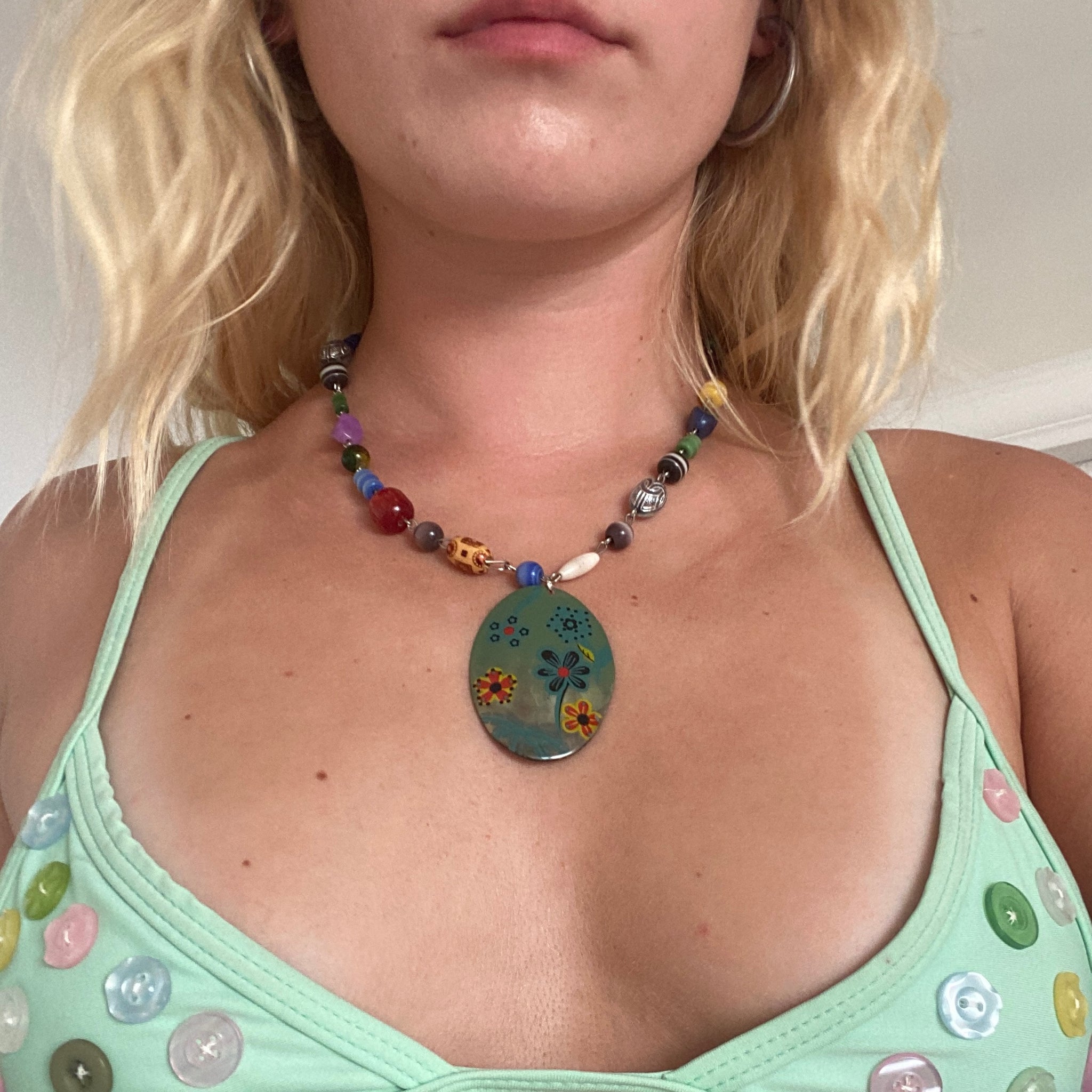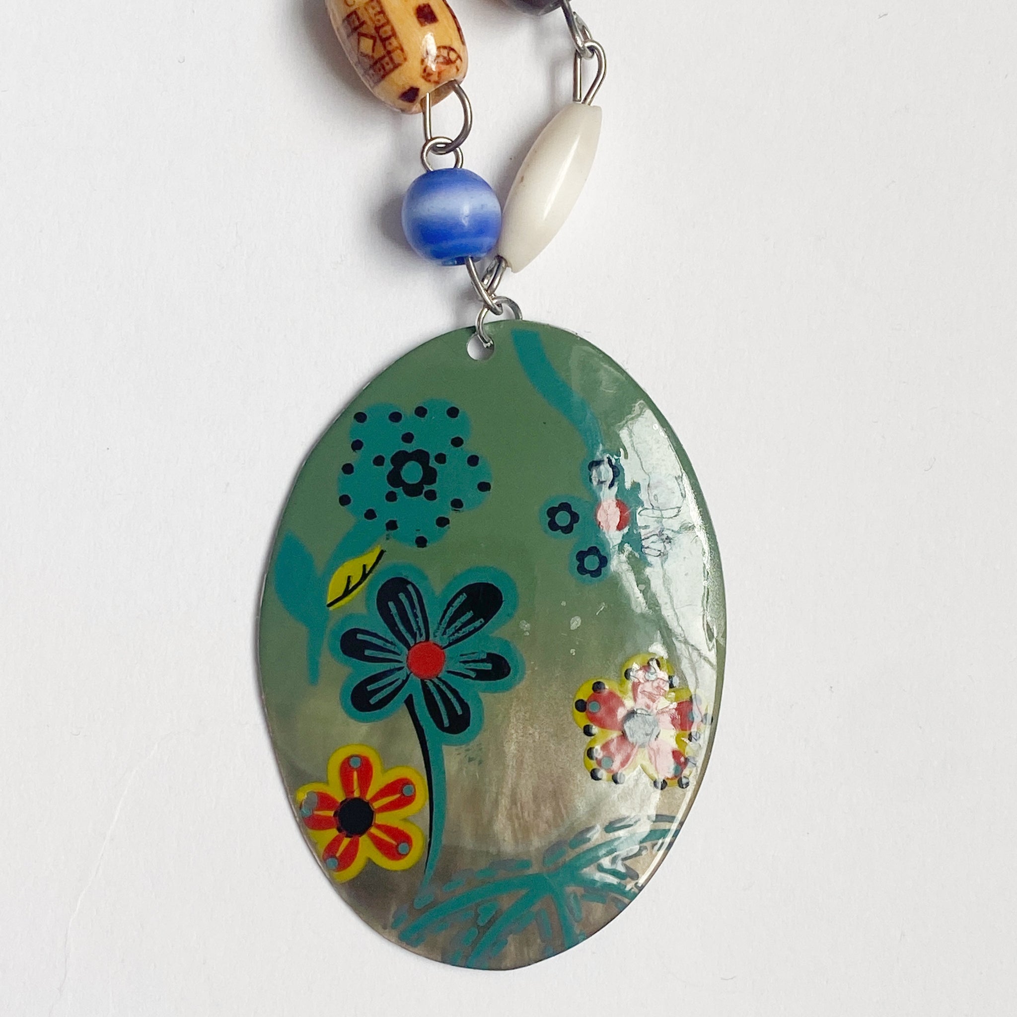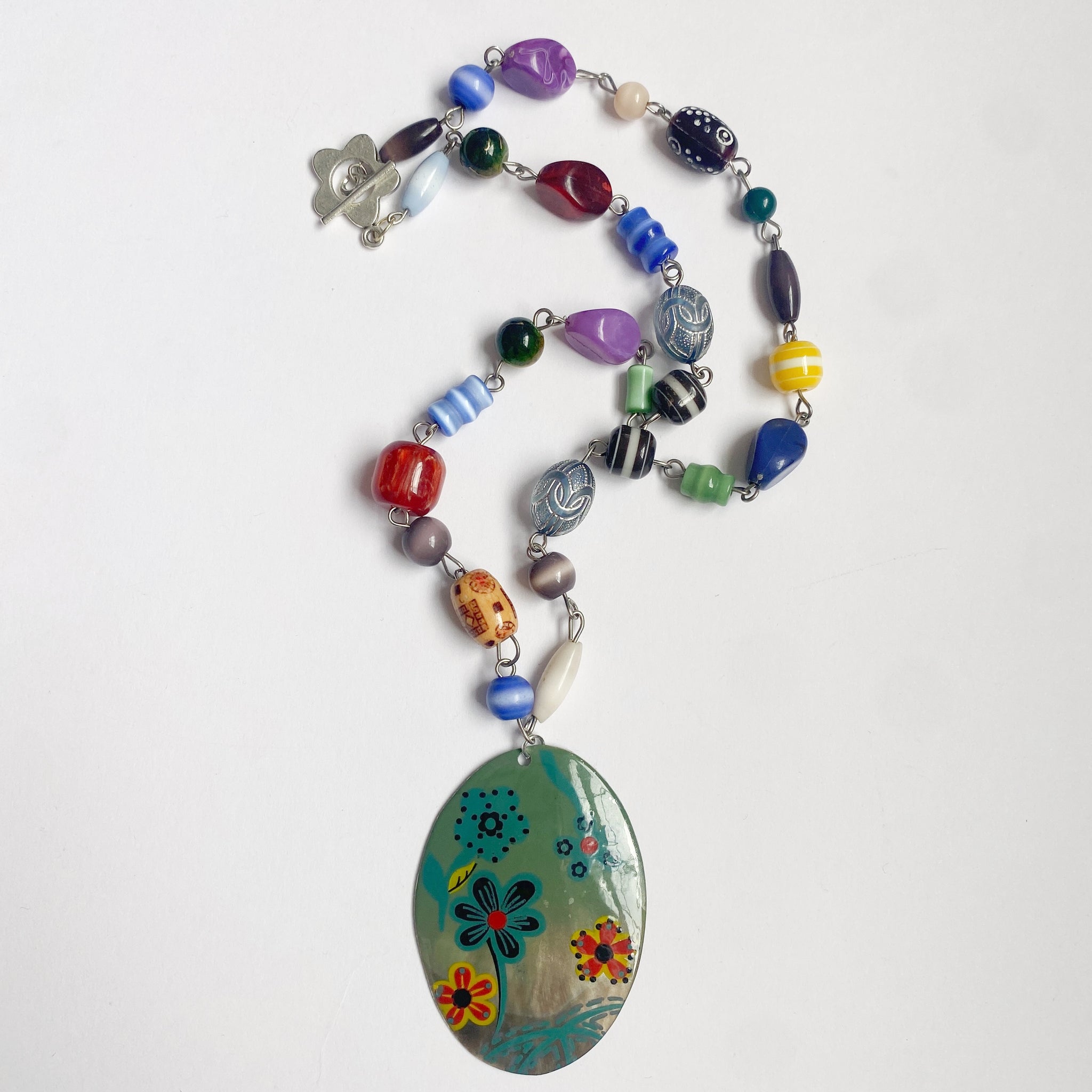 Made with 0.38mm stainless steel wire. Fastens with an 18K gold plated flower toggle clasp.