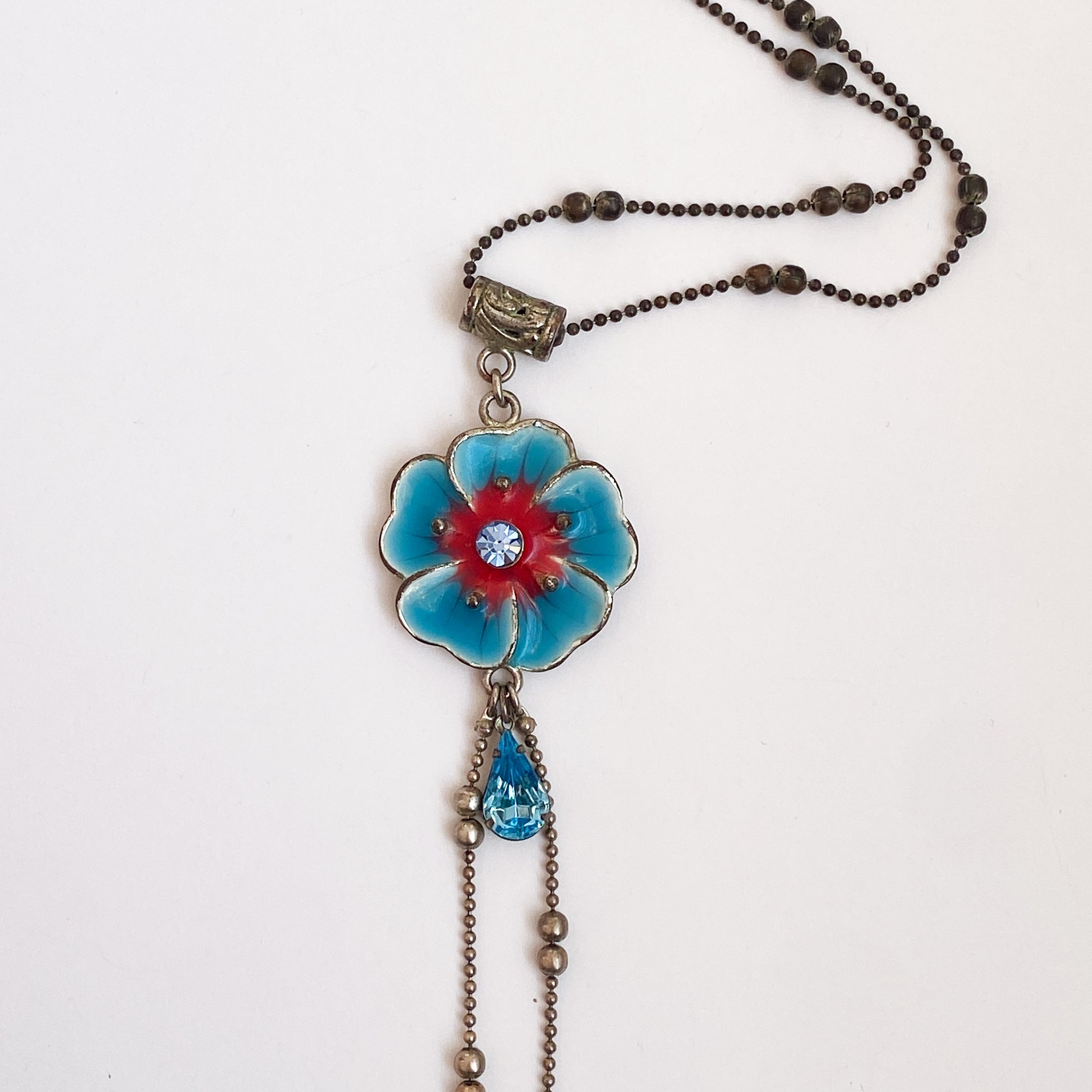 Made with 0.38mm stainless steel wire. Fastens with an 18K gold plated flower toggle clasp.